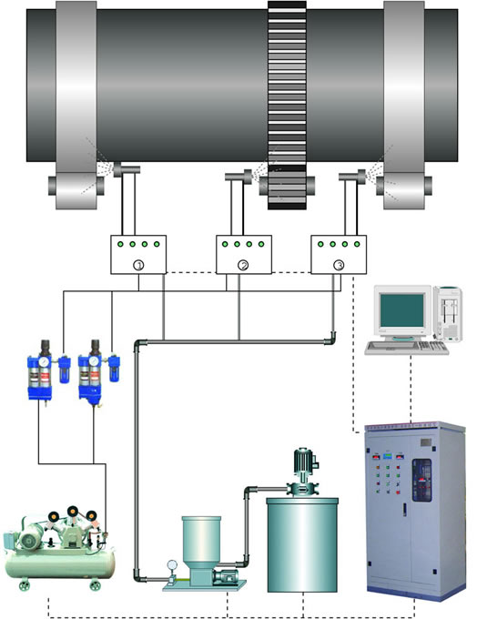 YBDRH系列智能噴油潤滑系統(tǒng),以壓縮空氣為動力,配合氣動元件、氣動高壓潤滑泵或電動高壓潤滑泵,通過控制系統(tǒng)使油或脂霧化,形成干燥油霧,經(jīng)管道定時定量霧狀噴射到齒輪表面,在齒輪表面形成堅韌油膜,周期循環(huán),從而提高潤滑效果,減少設(shè)備磨損,降低油品損耗??刂葡到y(tǒng)采用微電腦控制器設(shè)定系統(tǒng)參數(shù),監(jiān)控系統(tǒng)的運行;流量傳感器實時檢測油氣流量是否正常。整套裝置自動化程度高,操作方便,維護簡單、避免因潤滑不良而導(dǎo)致設(shè)備的損壞。