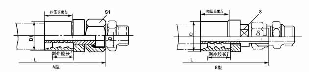 2、D1-接頭外套扣壓后直徑;Ⅰ、Ⅱ、Ⅲ - 膠管的鋼絲層數(shù)