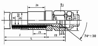 2、附錄表中d1 括號內(nèi)尺寸為擴口式管接頭標準中所缺少的螺紋,由使用者自己配制。尺寸L=l+2l2