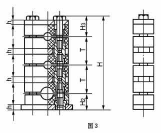 a)同一外形尺寸的B 型系列Ⅰ型管夾,可疊壘成組成安裝,但最多不超過(guò)5 根管子。