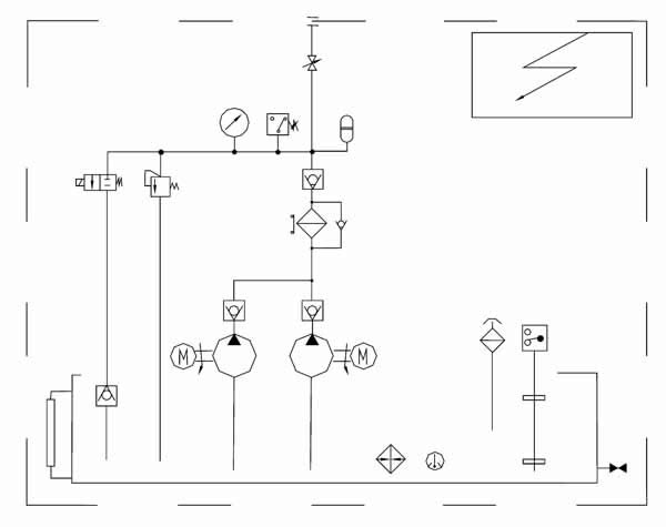 該站主要由油箱(帶電加熱器、液位計(jì)、電接點(diǎn)溫度計(jì)、空氣濾清器、液位控制器)、兩臺(tái)高壓油泵裝置(一備一用)、溢流閥、二位二通電磁閥、蓄能器、壓力控制器、過(guò)濾器、單向閥、壓力表等和PLC電氣控制箱組成。在電動(dòng)機(jī)的牽引下油泵工作,從油箱內(nèi)吸入潤(rùn)滑油加壓排出,途徑單向閥、過(guò)濾器、蓄能器后向系統(tǒng)主管線供送。 正常工作時(shí),一臺(tái)高壓油泵常開工作,另一臺(tái)備用,可通過(guò)電氣轉(zhuǎn)換開關(guān)來(lái)交替使用,并可通過(guò)按鈕開關(guān)人工啟動(dòng)和停止油泵,PLC電氣控制箱對(duì)油氣系統(tǒng)實(shí)行程序化全自動(dòng)控制,還可向主控室提供系統(tǒng)“運(yùn)行”、“停止”、“故障”等遠(yuǎn)程信號(hào)接口。 |