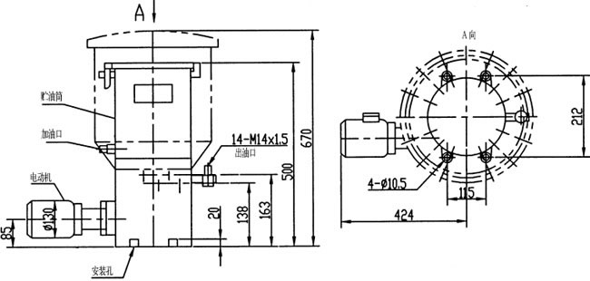 DDRB-N型多點潤滑泵主要由貯油器、減速機構、壓油柱塞泵和電動機等部分組成。 電動機驅動蝸桿、蝸輪減速轉動,蝸輪軸帶動偏心驅動輪以低速轉動,由驅動輪的拉盤帶動壓油柱塞泵元件柱塞作往復的吸壓油運動,從而各泵元件的出油口向外排出潤滑劑。 | |||||||||||||||