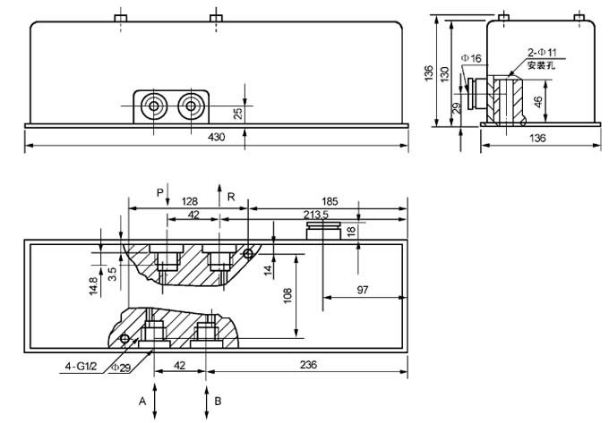 | 五、使用說明 1、該閥應(yīng)安裝在系統(tǒng)被控主、支管路的前端,且位于通風(fēng)、 干燥便于檢查及周圍無運(yùn)動機(jī)構(gòu)干涉的部位。 2、當(dāng)作二位二通使用時,須把出油口“B”和回油口“R”封堵。 3、當(dāng)作二位三通使用時,須把出油口“B”封堵。 4、電控接線按上圖原理連接。 六、常見故障及排除方法 1、換向閥不換向。 可能無換向信號輸入電機(jī),線腳焊接脫落;電機(jī)軸與偏心輪松動未緊固;閥腔內(nèi)進(jìn)入雜質(zhì)滑芯卡死等原因,查明后排除即可。 2、滑芯二端漏油。 主要是二端密封圈損壞引起,可能是密封圈庫存久或長時間使用已老化,更換密封圈即可。 | |||||||||||||||