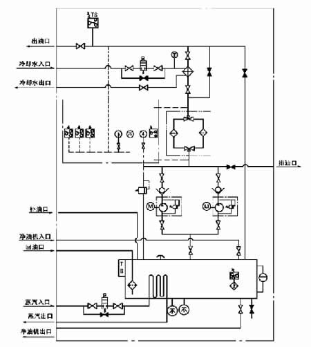 | 1、在雙筒過(guò)濾器上裝有差壓訊號(hào)器,當(dāng)過(guò)濾器進(jìn)出口壓差超過(guò)0.10~0.15MPa 時(shí),差壓訊號(hào)器發(fā)出報(bào)警信號(hào),用來(lái)通知切換工作濾網(wǎng)筒,以便清洗或更換濾網(wǎng)(此裝置設(shè)計(jì)在冷卻器裝置之前;油粘度較高者更適合)。 2、在冷卻器的進(jìn)水口裝有一個(gè)直讀式溫度計(jì)和電磁水閥,用來(lái)觀察進(jìn)水溫度和控制冷卻水的通或斷。在系統(tǒng)的出油口處,裝有一個(gè)電接點(diǎn)、溫度計(jì)和溫度控制器,用于控制工作油溫;當(dāng)出口油溫高于某一調(diào)定的溫度時(shí),電磁水閥自動(dòng)開啟,冷卻器投入工作,直到油溫恢復(fù)正常為止。如冷卻器已投入工作,系統(tǒng)的油溫繼續(xù)上升,達(dá)到最高溫度時(shí),溫度控制器發(fā)出油溫過(guò)熱報(bào)警信號(hào)。當(dāng)冷卻器需要更換或維修時(shí),可關(guān)閉冷卻器的進(jìn)出口閥門,打開旁路閥門,油液即不經(jīng)冷卻器直接送往潤(rùn)滑點(diǎn)。 3、在油箱上裝有二個(gè)電接點(diǎn)溫度計(jì)和二個(gè)液位開關(guān),當(dāng)油箱油溫低于某一調(diào)定溫度時(shí),電加熱器通電或蒸汽閥門開啟,對(duì)油液進(jìn)行加熱,直到達(dá)到正常操作油溫為止。當(dāng)油箱中油液的溫度低于最低調(diào)定溫度時(shí),油泵不能啟動(dòng),需對(duì)油箱中油液加熱。當(dāng)油箱的液位達(dá)到上限或下限時(shí),液位開關(guān)發(fā)出報(bào)警信號(hào)。 4、型號(hào)后帶“A”者為有壓力罐的裝置,可滿足發(fā)生意外事故或突然停電時(shí),儲(chǔ)存在壓力罐中的油液可作臨時(shí)壓力油源向系統(tǒng)短時(shí)供油,但需注意壓力罐上的一般單向閥應(yīng)水平安裝,不得向下安裝(對(duì)較小的旋啟式單向閥允許向上安裝),附圖中應(yīng)作相應(yīng)改變。 5、配有電控柜和儀表盤,觀察運(yùn)行參數(shù)方便,可實(shí)現(xiàn)自動(dòng)控制和事故報(bào)警。 | |||||||||||||||||||||||||||||||||||||||||||||||||||||||||||||||||||||||||||||||||||||||||||||||||||||||||||||||||||||||||||||||||||||||||||||||||||||||||||||||||||||||||||||||||||||||||||||||||||||||||||||||||||||||||||||||||||||||||||||||||||||||||||||