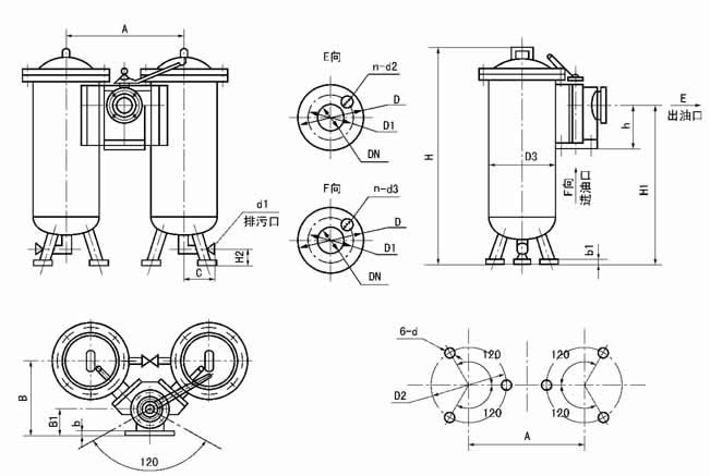 1、過濾器分別由兩組過濾裝置和一個六通換向閥組成,正常工作時,一組過濾裝置投入運行,另一組被換向閥封閉備用。 2、閥片式六通換向閥為手動,工作過程中,截止備用過濾裝置,連通工作中的過濾裝置,閥上部有通、止標記,在工作壓力≤0.6MPa可不停機換向。 3、過濾裝置為二組,一組工作,一組備用。在工作中過濾裝置需要維修清洗時,可啟動另一組備用過濾裝置投入工作,而不影響主機正常工作。 4、系統(tǒng)圖 |