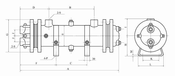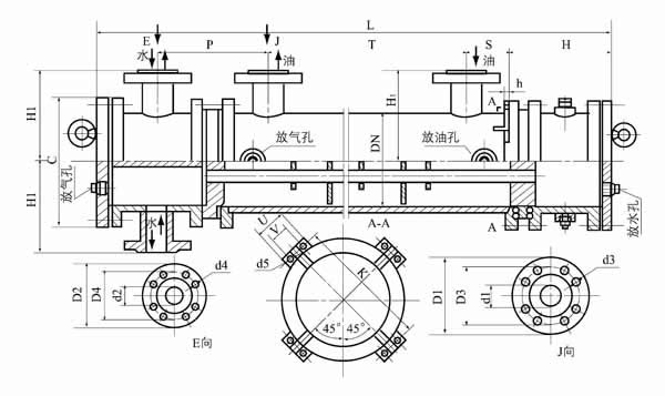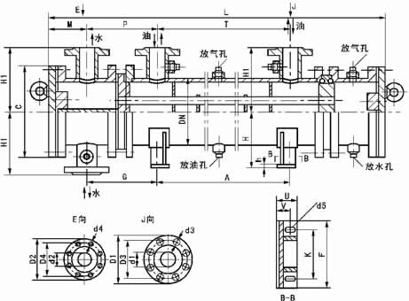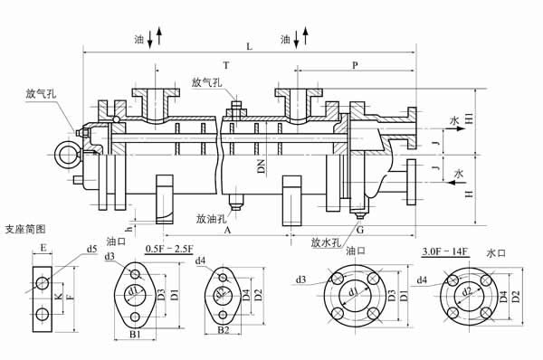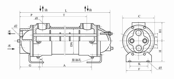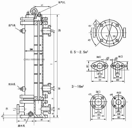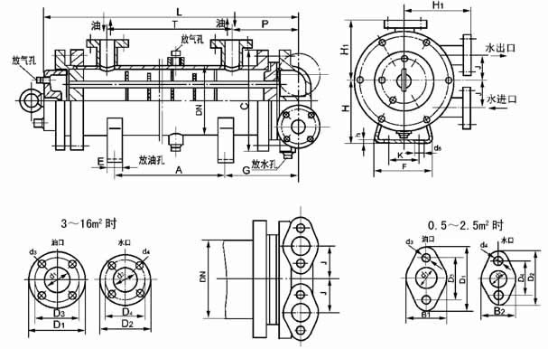 冷卻面積0.5~2.5m2時(shí)進(jìn)出水口型式; 3~16m2時(shí)為上圖
